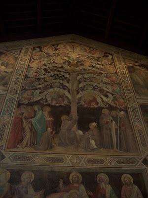 Para los aficionados a Cuarto Milenio, Milenio Tres e Iker Jiménez, en Florencia hay una basílica, la de la Santa Cruz, que además de ser el panteón de los Ilustres Italianos (Dante, Miguel Ángel, Galileo, Machiavelo, etc), tiene un claustro en el que encontraron enterrada una gran cruz de madera y que tiene una capilla en la que está el siguiente fresco: