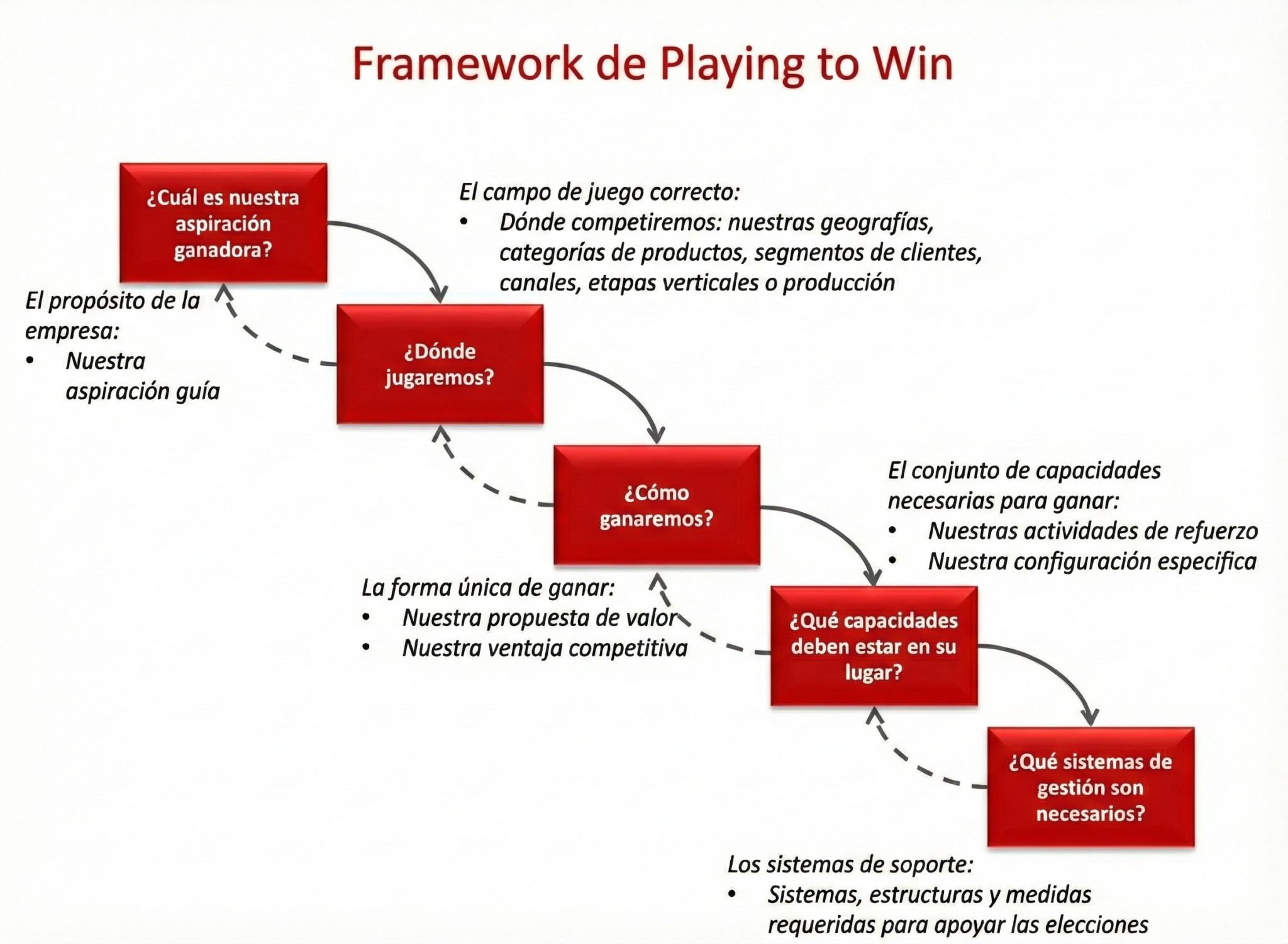 Terreno de juego (where to play): ¿dónde vas a competir? ¿dónde piensas desembarcar? ¿quién es tu cliente? Define geografía, canal e ICP. Si intentas vender a todos, no le vendes a nadie.